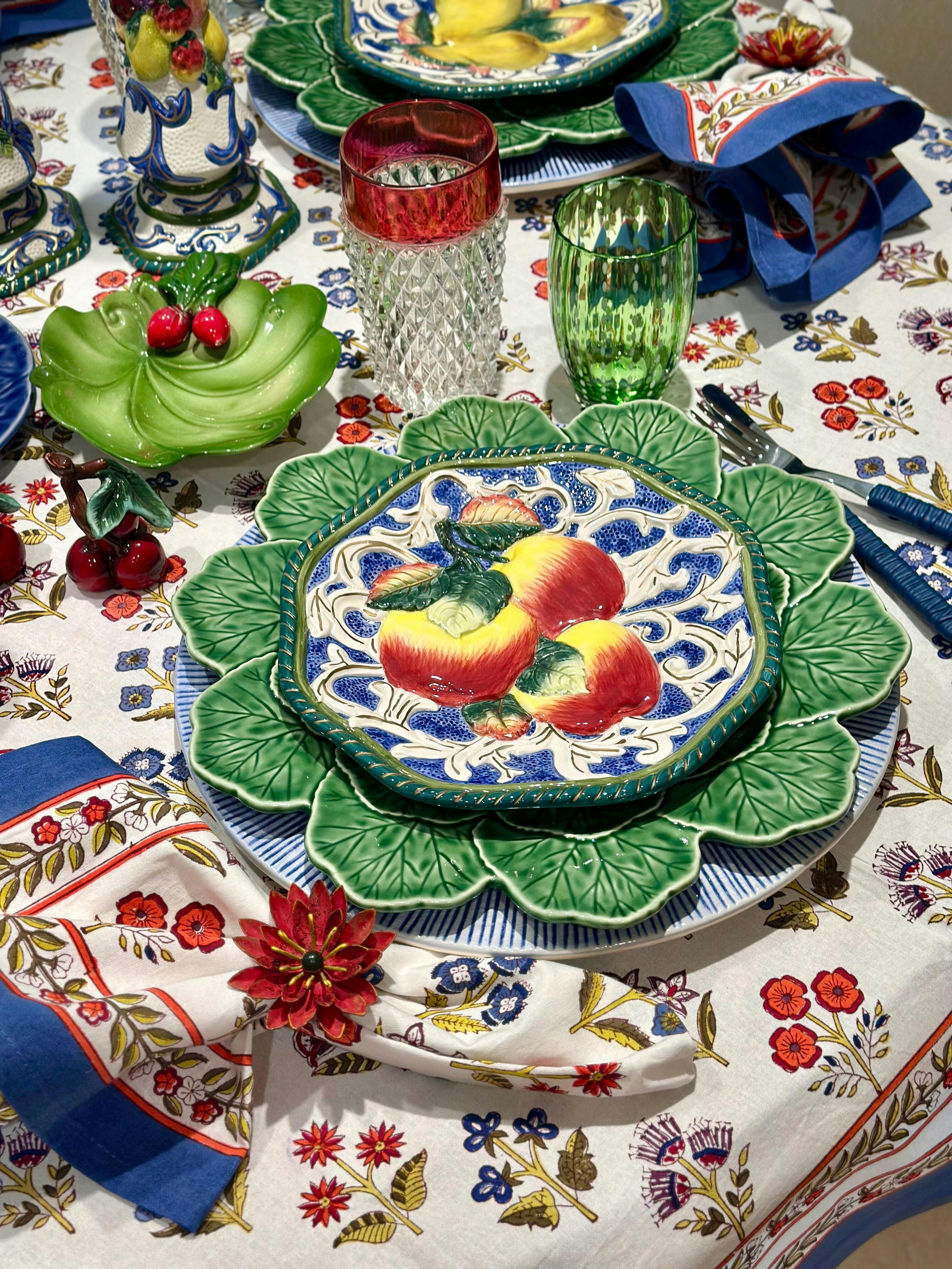 Lush color. Garden grandeur. This sculpted charger from Bordallo Pinheiro® celebrates the bold beauty of geranium leaves in full bloom. With its generous size and deep botanical texture, it brings layered richness to your table—whether styled beneath a dinner plate or serving as the centerpiece itself.